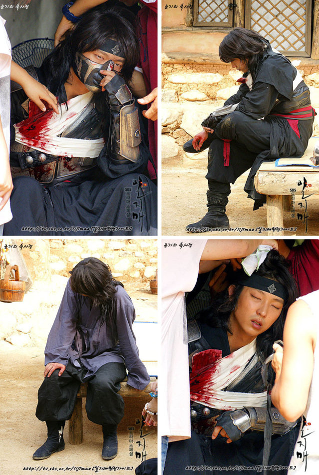在盛暑的炎熱氣溫穿著古裝、蒙著厚重的面具拍攝大量動作戲,17、18集開始觀眾會發現他臉色很差、面如死灰,嗓音沙啞夾著濃重的鼻音...是因為緊湊的日程,幾乎每天熬夜拍攝,連續工作28天的鐵人病了,發燒打點滴也堅持拍攝工作。 在韓國播出的時候不知情的觀眾還驚嘆化妝術太好了、哭戲太好了,連沙啞聲都這麼真實,殊不知那些都是體力到達極限的痛苦結晶。
